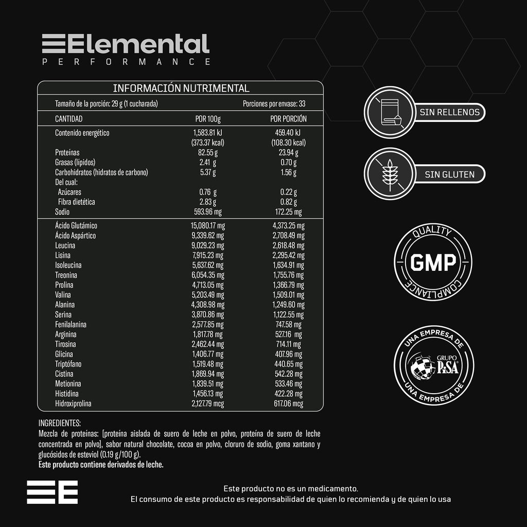 Proteína Whey Aislada Sin Lactosa Sabor Chocolate | ELEMENTAL