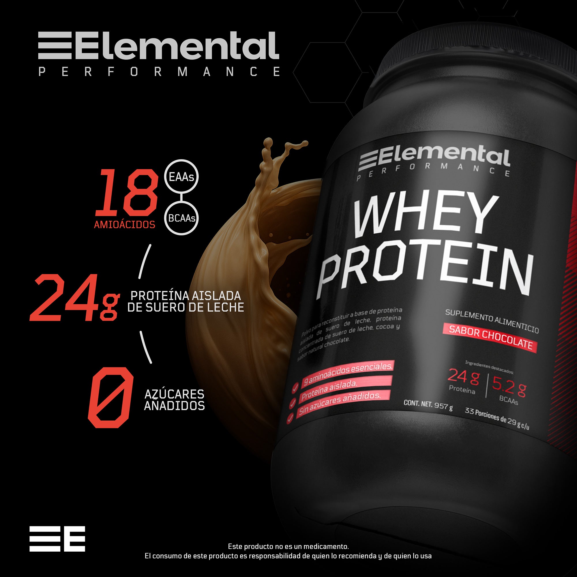 Proteína Whey Aislada Sin Lactosa Sabor Chocolate | ELEMENTAL