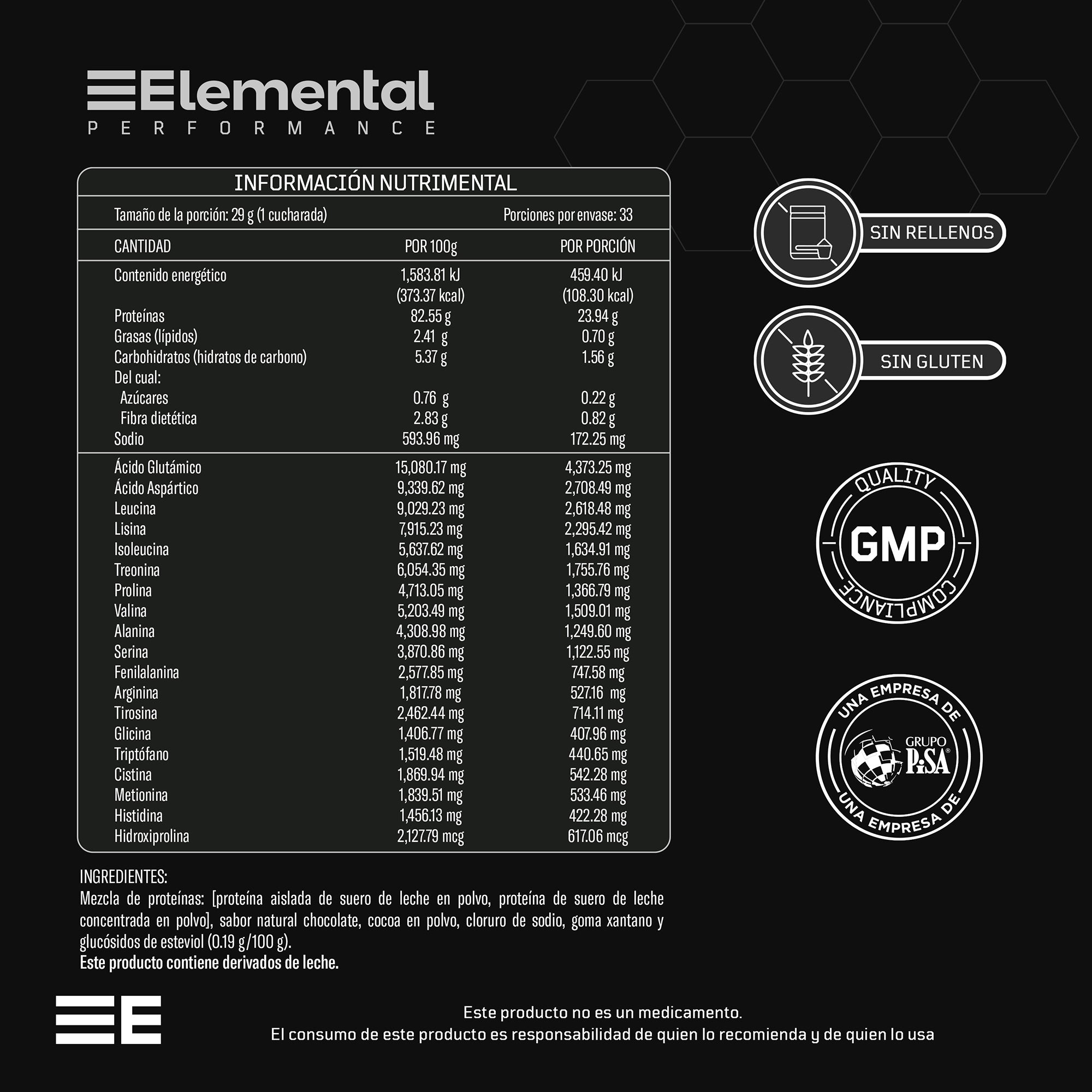 Descubre la pureza y calidad de Clean Isolated Whey Protein de Elemental. Si buscas un suplemento de proteína de alta calidad, fácil de digerir y con un perfil nutricional superior, nuestra fórmula es la elección perfecta. Desarrollada y analizada bajo los estándares farmacéuticos de Laboratorios PiSA, te garantizamos un producto excepcionalmente limpio.